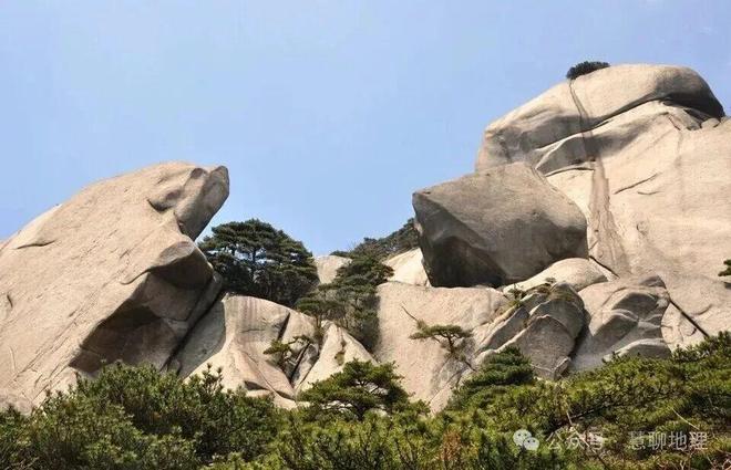 (1)黄山、华山、三清山、泰山:山顶常见浑圆状的花岗岩巨石(如黄山的“仙桃石”),就是球状风化的产物。