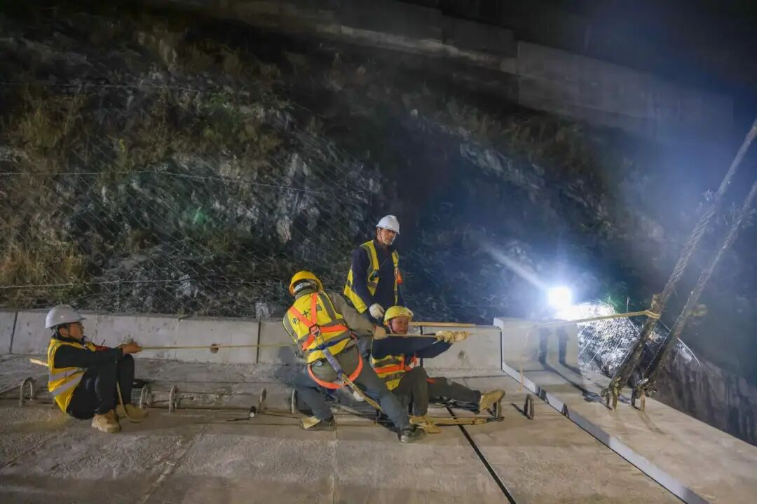 施工过程中,中铁十二局严格落实“一点一案”管控要求,细化作业流程,从设备调试、梁体转运到现场吊装、精准落位,全环节闭环管控、无缝衔接。“针对拉瓦四号棚洞春节前34片横梁吊装任务,项目部优化吊装方案、强化团队协作,实现单片横梁平均安装时间仅约8分钟,同时创下三处棚洞施工天窗利用率100%、安全正点率100%的亮眼成绩。”中铁十二局黔桂增建二线项目部分部经理陈勇说。