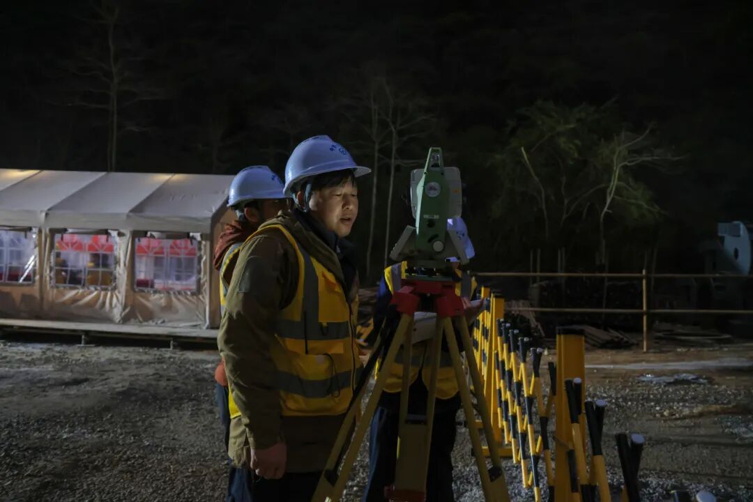 此次施工最大的难点在于作业空间极小,部分作业面大型吊装设备回转半径仅24米,而单榀横梁重达29.7吨,既要规避周边接触网等关键设施,又要确保安装精度,施工难度与安全管控压力双重叠加,犹如“螺蛳壳里做道场”。施工单位中铁十二局将数字化模拟推演与现场实测数据深度融合,综合运用高精度测量定位技术,对吊装路径、落位角度实施全流程动态管控,最终实现横梁安装的毫米级精准控制。